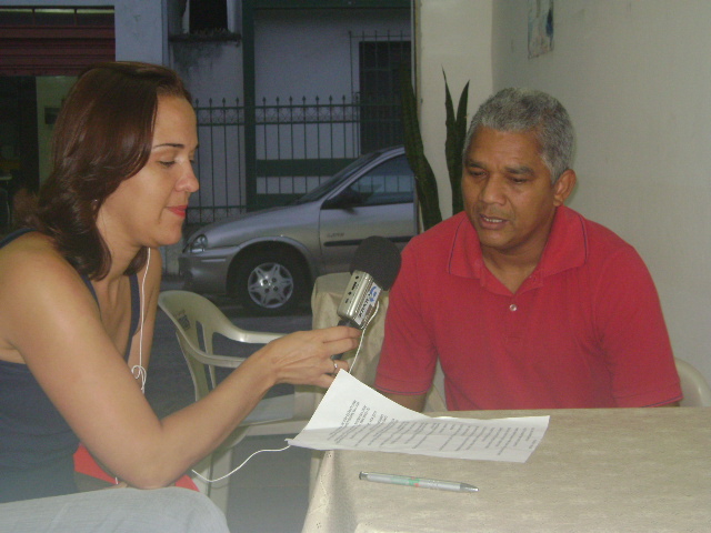 Patrícia Oliveira entrevistando o ex-zagueiro Mailson