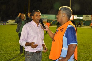 Elias Borges entrevistado pelo repórter Edmundo Vieira, após empate contra a Catuense