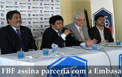 Todos os dez clubes do interior vão colocar em suas camisas a marca da Embasa como patrocinador principal. o contrato é de R$ 1,5 milhão e cada clube irá receber 150 mil reais. O evento aconteceu no auditório principal da sede da FBF, no Palácio dos Esportes.