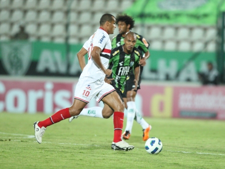 O São Paulo teve mais posse de bola, mas ficou no empate por 1 a 1 contra o América-MG, nesta quinta-feira (18), em Sete Lagoas (MG), pela 18ª rodada do Campeonato Brasileiro. Com o resultado, a equipe tricolor perdeu a oportunidade de aproveitar o tropeço do Flamengo ( levou 4 a 1 do Atlético-GO) e assumir a vice-liderança da competição.