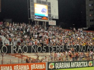 A vitória por 2 a 0 do Náutico sobre o Atlético-GO, pela 27ª rodada da Série A do Campeonato Brasileiro, foi marcada pelo clima tenso entre a torcida do time pernambucano e a arbitragem. O juiz Leandro Vuaden se negou a dar o apito inicial enquanto um grupo de torcedores não retirasse das arquibancadas uma faixa com os dizeres “Não irão nos derrubar no apito”. Os fãs só atenderam ao pedido do do árbitro depois de uma conversa com os jogadores do clube alvirrubro.