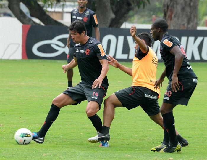Dessa maneira, o Flamengo deverá ir a campo nesta quarta-feira com a seguinte escalação: Felipe; Wellington Silva, Renato Santos, Marcos González e Ramon; Amaral, Victor Cáceres, Renato Abreu e Cleber Santana; Liedson e Vagner Love.
