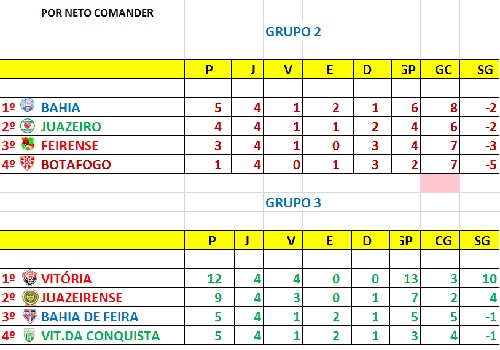 Com o resultado, o Bahia de Feira permaneceu terceira posição, do grupo 03 com cinco pontos conquistados. Já o Botafogo-Ba continua na lanterna do Grupo 2, com somente um ponto.