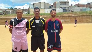 Vinicius Moxotó (centro), apita o jogo Japec e Vasco no campo do Panorama