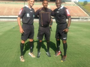 Na partida entre Grêmio e Patagônia, que acontece neste domingo (15), as 08h45, apita Carlos de Jesus (centro), auxiliado por Marcelo Carvalho e Marildo Queiroz A reserva será Bianê Rosendo.