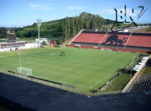 O Vitória empatou sem gols com o Brusque nesta sexta-feira (17), no Estádio Augusto Bauer, válido pela 24ª rodada da Série B. Poças se espalharam no campo em razão da chuva e os dois times ficaram prejudicados.