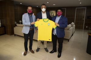 O Diretor Geral do Instituto de Radiodifusão Educativa do Estado da Bahia (IDERB), Flávio Gonçalves, e o Presidente da Federação Bahiana do Futebol, Ricardo Lima, estiveram reunidos nesta sexta-feira (29) com o Presidente em exercício da CBF, Ednaldo Rodrigues, na sede da entidade, no Rio de Janeiro (RJ).