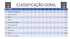 Confira a classificação de momento do Campeonato dos Servidores, após o término da 2ª rodada e a antecipação de uma partida da 3ª. Segundo o regulamento da competição, as oito melhores colocadas no geral passarão para a próxima fase.