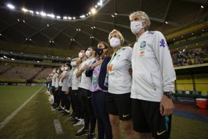 “Nós nos tornamos mais imprevisíveis, construímos mais tabelas e ainda falamos em desafiar as linhas, mas fazemos isso de um jeito diferente, com jogadoras diferentes e jogadas diferentes. Isso é difícil, porque o ataque é muito rápido. Você tem atletas velozes, mas também precisa tomar as decisões mais rápido, e há muitas tabelas. Claro que isso é mais difícil se comparado a simplesmente jogar pelas pontas e tentar um cruzamento. Precisamos fazer as duas coisas e ser pacientes, porque eu realmente acredito nas habilidades técnicas das jogadoras brasileiras. Agora, pouco a pouco, acho que nos tornaremos mais coesas. Outro aspecto é quando perdemos a posse, para mencionar uma situação defensiva também. Esses três jogos foram muito bons para nós, passamos por diferentes fases de ataque e defesa. É só assistir alguns minutos de cada uma das partidas para perceber que é um processo de aprendizagem. Toda partida nos ensina”, avaliou.