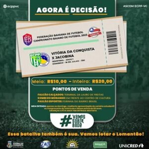 A FBF anunciou na tarde desta quinta-feira (13), a escala de árbitros para o jogo Vitória da Conquista e Jacobina, que acontece neste domingo (16), às 15 horas, no estádio Lomanto Junior, pelo jogo de ida das semifinais do Campeonato Baiano da Série B.