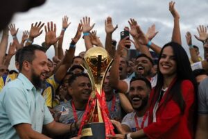 Após a final deste domingo, a diretoria da Federação Bahiana de Futebol realizou a entrega da premiação aos campeões e vice-campeões da Série B. Estiveram presentes o Presidente da entidade, Ricardo Lima, a Diretora de Competições, Taíse Galvão, e o Diretor Administrativo e Financeiro, Marcelo Araújo. Também compareceu o Vice-Presidente da CEAF-BA, Vidal Cordeiro Lopes.