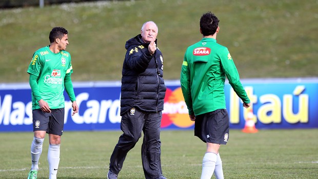 Mas o lateral-esquerdo não foi pego de surpresa durante a distribuição dos coletes. Antes mesmo do aquecimento da seleção brasileira, Luiz Felipe Scolari conversou com o jogador por cerca de cinco minutos no círculo central do CT. Na atividade tática, que a todo o momento era parada por Felipão. Tudo para indicar o melhor posicionamento para os atletas.