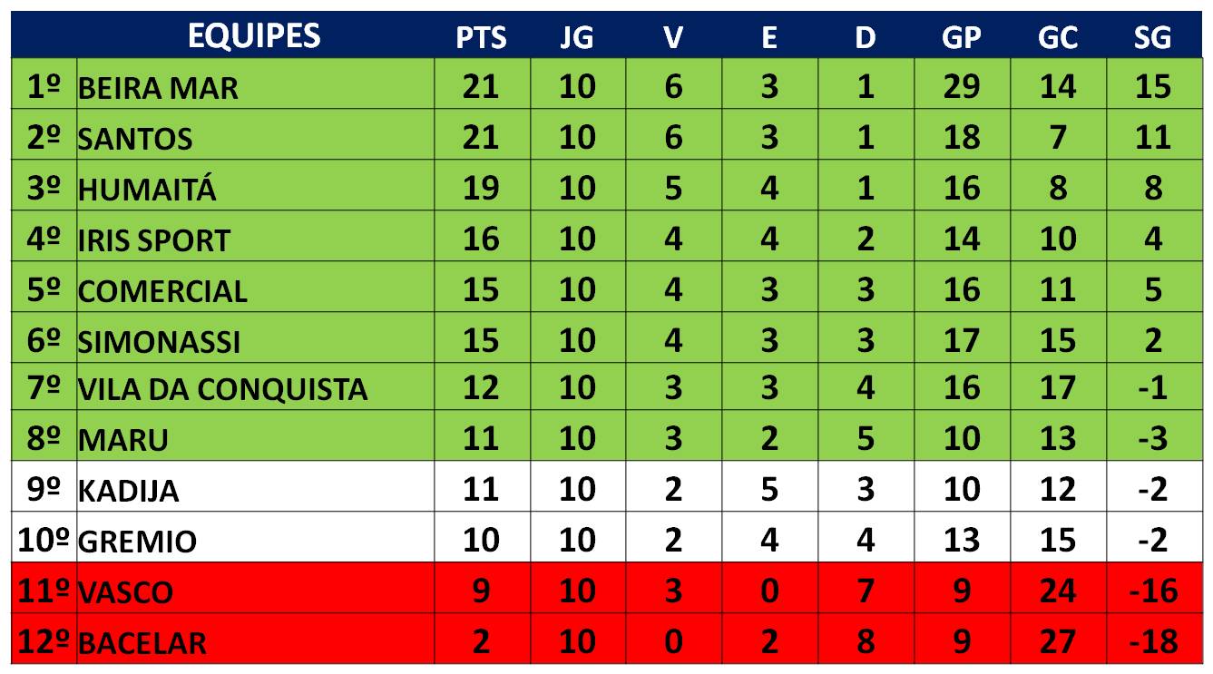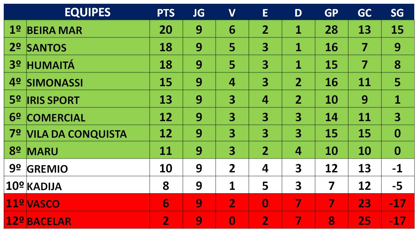 Com estes resultados quem levou a melhor foi o Kadija que entrou na zona de classificação. Já Beira-Mar assume provisoriamente a liderança e torcerá para Santos perder seu próximo jogo contra Bacelar. O Humaitá garante a 3ª colocação. Enquanto com a vitória o time do Simonassi subiu para a 4ª colocação e o Iris caiu para a 5ª colocação.
