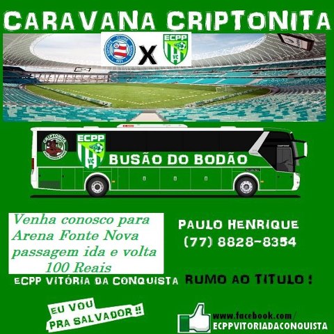 A Torcida Criptonita está inscrevendo os torcedores que quiserem assistir ao jogo entre Bahia e Vitória da Conquista, na Arena Fonte Nova, no próximo domingo (14).
