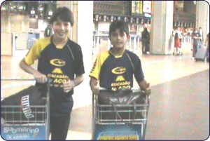 Vestido com uniforme da TradSport,e com seu primo Kadson, Hítalo desembarcou no aeroporto de Cumbica em Guarulhos para se apresentar no São Paulo.