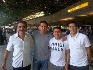 Se em 2000, 2007 e 2012 Juan Roman Riquelme desembarcou no Brasil com o semblante sério para disputar a final da Copa Libertadores, na tarde da última terça-feira ele estava eufórico. Carregando cuidadosamente o terno que usaria na gravação do Troféu Mesa Redonda, o meia se apressou em pedir à reportagem para bater uma foto ao lado do irmão, do empresário e de um amigo no Aeroporto de Guarulhos.